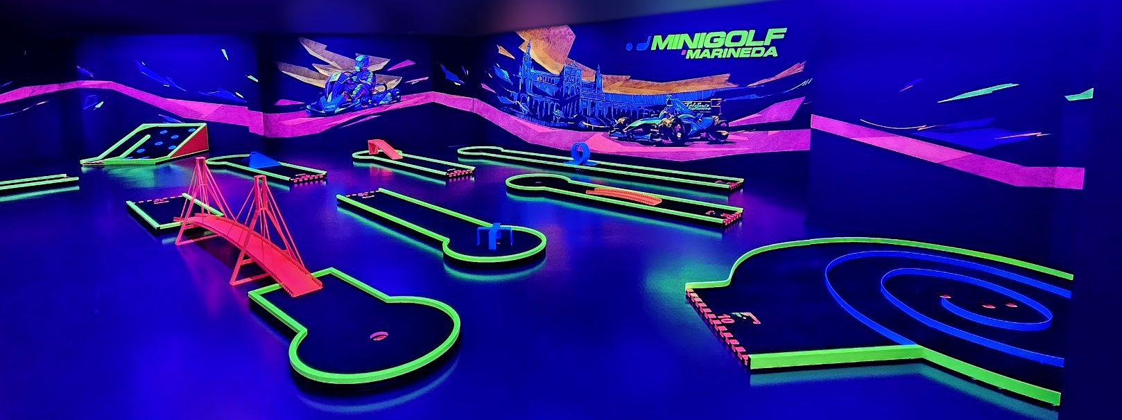 En resumen, Minigolf Karting Marineda transforma un espacio de ocio en una experiencia escenográfica continua, donde arquitectura, arte y juego se unen para ofrecer un recorrido único entre el día y la noche.